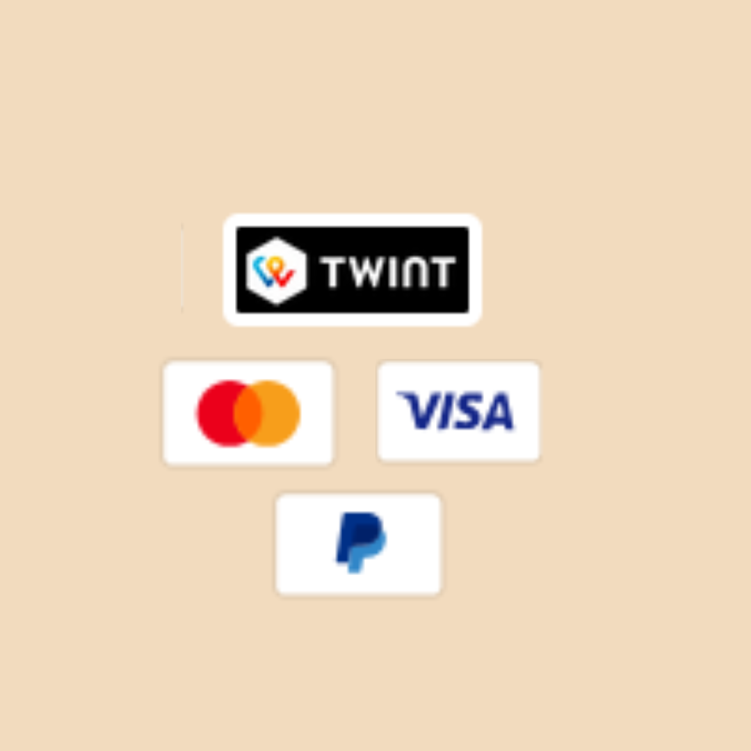 • Twint, PAYPAL, Kreditkarte, etc.