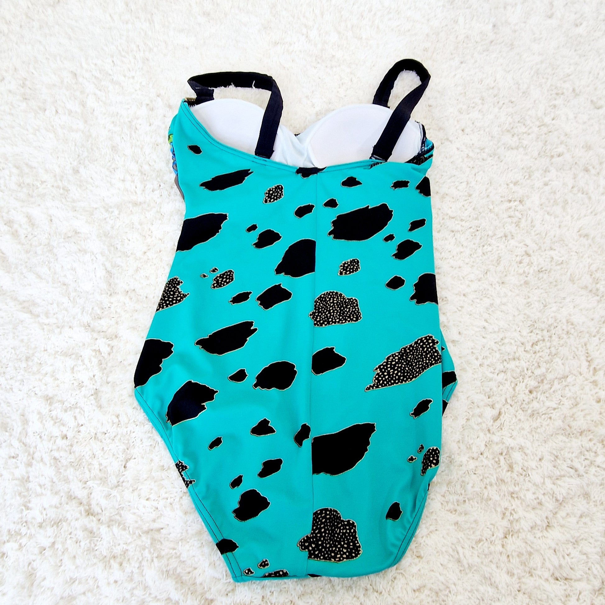 Badeanzug, türkis-grün-schwarz-gold, M, B-Cup