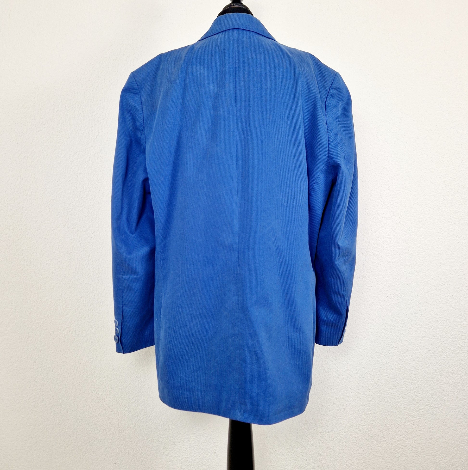 Dieser Vintage Blazer aus der Ära der 1980er-Jahre besticht durch seinen leuchtenden Blauton und das zeitlose Corddesign. Ein authentisches Kleidungsstück, das stilvolle Retro-Mode mit Komfort verbindet.